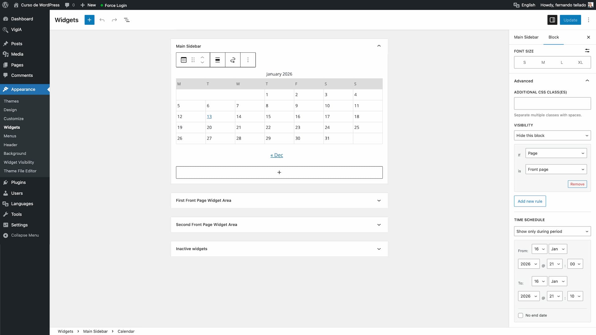 • New: Time Schedule section in widget visibility panel for both classic and block editor