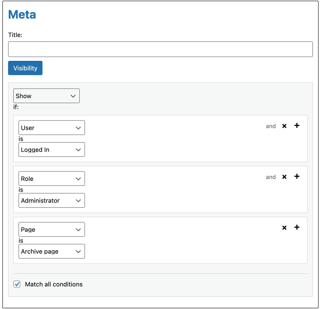 Create sophisticated visibility rules by combining multiple conditions: