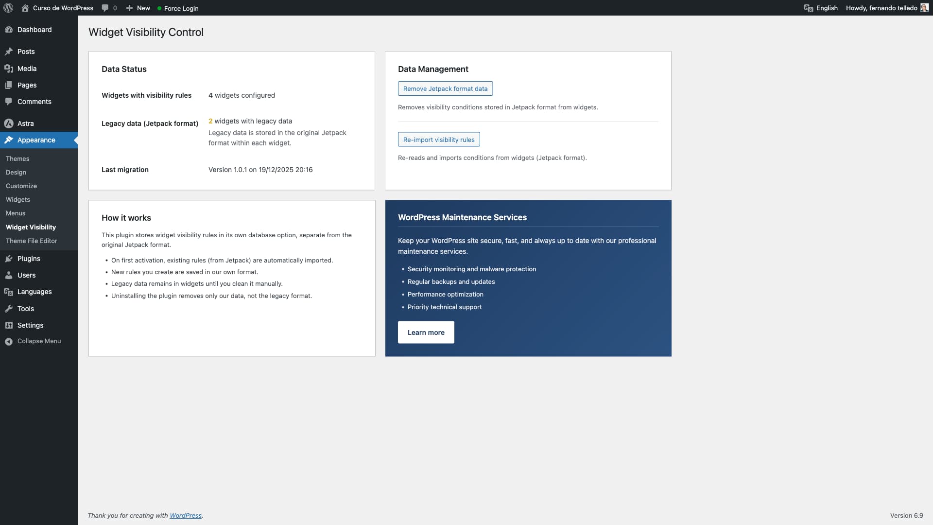 Coming from Jetpack? Your existing visibility rules will be automatically imported. Visit Appearance > Widget Visibility to review your imported data.